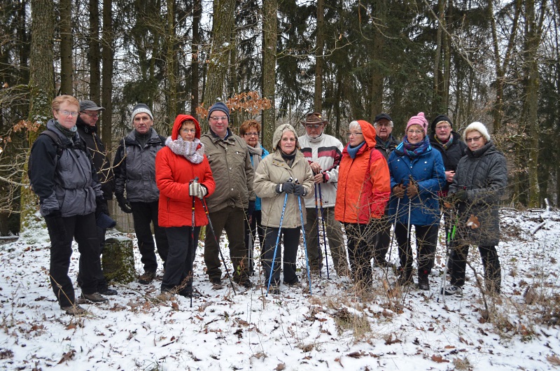 Dienstag, den 10. Januar 2017Mit einer Halbtageswanderung haben 15 Daadener Wanderfreunde die Wandersaison im neuen Jahr eröffnet. Wanderführer Martin Schmidt führte die Wanderer hinauf zur Hüllbuche und weiter über den Hellerhöhenweg bis zum Bahnhof in Grünebach.