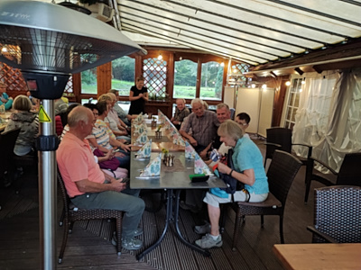 Eine kurze Autofahrt war es nur bis zur Fischerhütte, wo sich die Wanderfreunde aus dem Daadener Land und aus Herdorf nun gemütlich niederlassen konnten. Wie man vernehmen konnte, hat es allen in der gemütlichen „Fischerhütte“ gut gefallen, die lange Anreise hat sich gelohnt und das Essen hat auch geschmeckt.